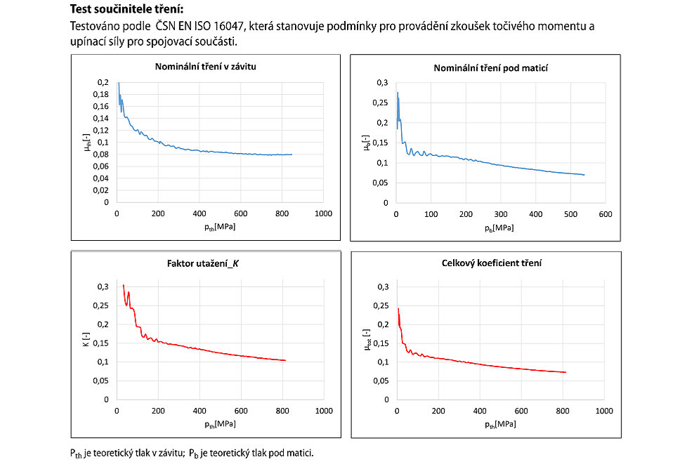Графики показывают устойчивую картину трения в резьбе и под гайкой. Горизонтальная ось выражает теоретическое давление в резьбе pth, соответственно под гайкой pb, которое увеличивается при затяжке. Кривые показывают, что трение не увеличивается с ростом нагрузки. Напротив, оно улучшается под гайкой благодаря уплотнению.